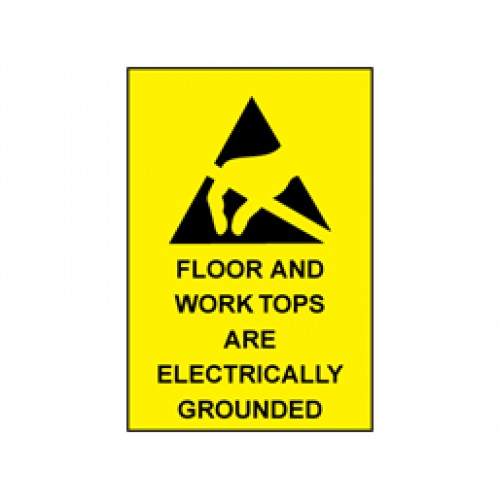 Floor and work tops are electrically grounded Sign.
